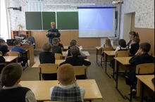 В целях привлечения внимания общественности к проблеме формирования культуры безопасности жизнедеятельности подрастающего поколения, а также повышения престижа профессии спасателя и пожарного в школе проведены уроки мужества. На уроке мужества присутствовали сотрудники МЧС, которые рассказали учащимся о профессии спасателя и его работе. Также была показана презентация "Спасатели службы МЧС".