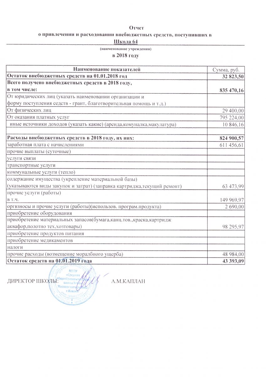Отчет о финансовых и материальных средствах 2018 г. (Муниципальный бюджет)