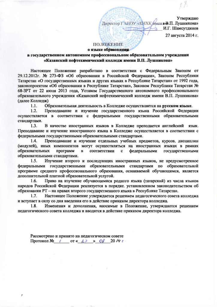 Государственное автономное профессиональное образовательное учреждение "Казанский нефтехимический колледж имени В.П. Лушникова"/Дәүләт автоном hөнәри белем учреждениесе «В.П. ЛУШНИКОВ ИСЕМЕНДӘГЕ КАЗАН НЕФТЬ ҺӘМ ХИМИЯ КӨЛЛИЯТЕ»