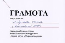 Холбутаева Наиля стала призером районного этапа Всероссийского конурса по чтению вслух "Живая классика". Поздравляем и желаем успехов.