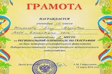 Жалилова Алсу заняла 2 место на региональной олимпиаде по географии на базе историко-географического факультета Набережночелнинского государственного педагогического университета (учитель Мубараков Ильдар Магфурянович). Поздравляем и желаем успехов.