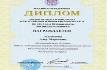 ОБЖ фәненнән Бөтенроссия укучылар олимпиадасының региональ этабында Җәлилова А. призер булды. Укытучысы- Әхмәтов Рамил Әбүзәрович. Аларны уңышлары белән котлыйбыз, сәламәтлек телибез!