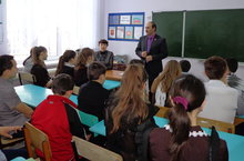 9 февраля в школе был проведён парламентский урок на тему" Гражданин. Государство. Общество". На встречу с учащимися пришёл Глава сельского поселения Минныразиев И.М.