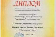 Талантлы балаларның "Яшь бөреләр" район фестиваленең "Күмәк бию" номинациясендә бию коллективы ( "Каз канаты" биюе өчен) 2 нче дәрәҗә лауреат исеме яулады.