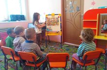 Дошкольная группа изучает азы математики. На занятих по формированию элементов математических представлений дети учатся узнавать цифры, показывать объем предметов с помощью цифр.