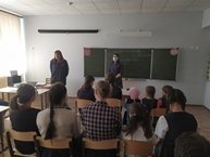 Балигъ булмаган балалар белән эшләү бүлегеннән Хайруллина И.С. һәм социаль яклау бүлеге психологы Петрова Л. укучылар белән очрашу үткәрделәр.
