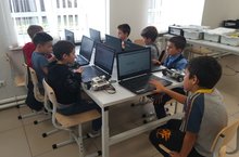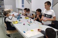 Робототехника түгәрәгендә укучылар MINDSTORMS EV3 ПОсы...