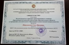 Педагог дополнительного образования Энзе Ибрагимова приняла участие в республиканском практико- ориентированном семинаре «Программно- методическое обеспечение образовательного процесса в учреждениях дополнительного образования художественной направленности». Семинар прошел в МБУ ДО «Центр искусств «Шарм » г. Казани. Программа семинара включала выступления педагогов Центра, мастер- классы а так же круглый стол, где участники смогли обсудить интересующие их темы.
