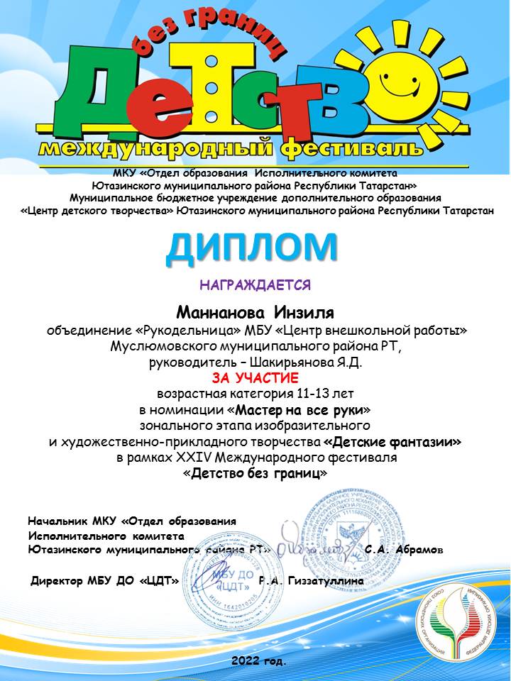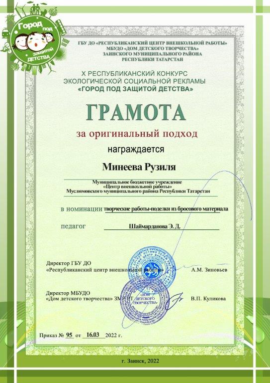 Грамота 2 место "Рабочей профессией славится мой Татарстан".