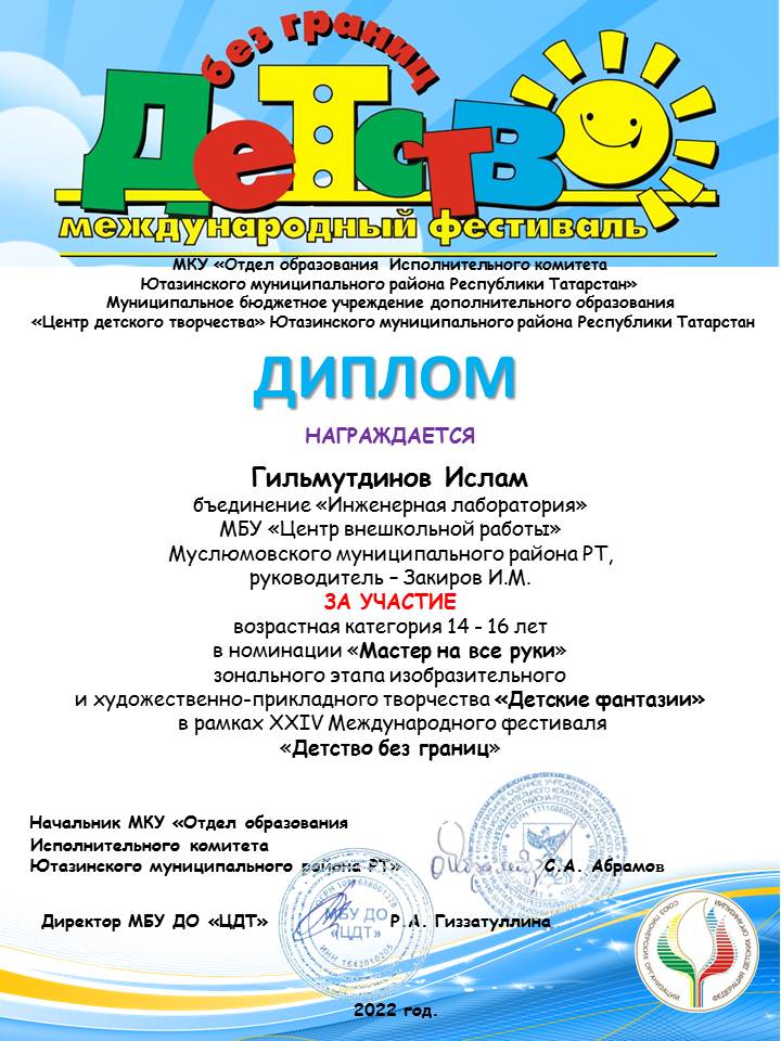 Конкурс "Технофест 2020" 2 место Сибгатуллин Раиль