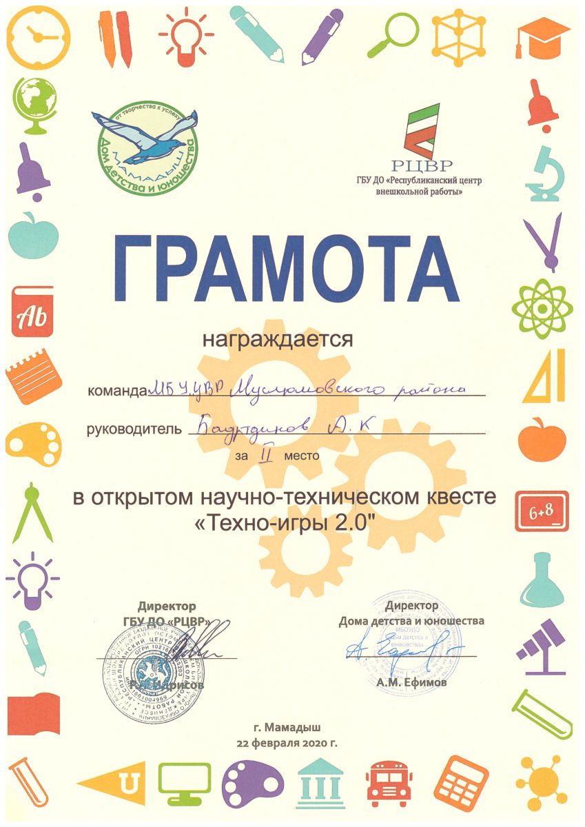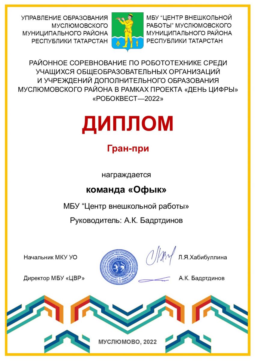 Дипломы "РобоКвест" Команда "ОФЫК"
