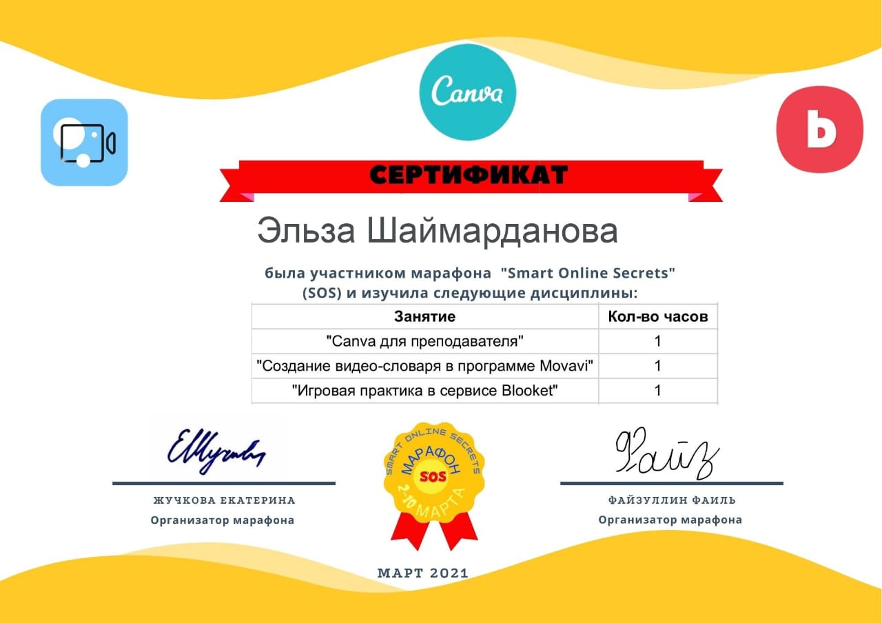 Сертификат мастер-класс Шаймарданова Э.Д.