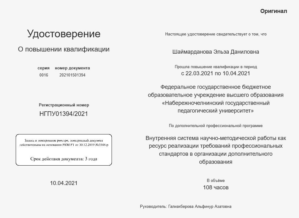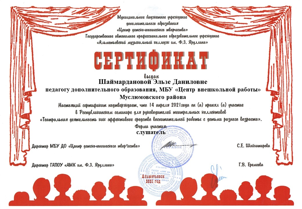 Сертификат за выступление на семинаре Шаймарданова Э.Д.
