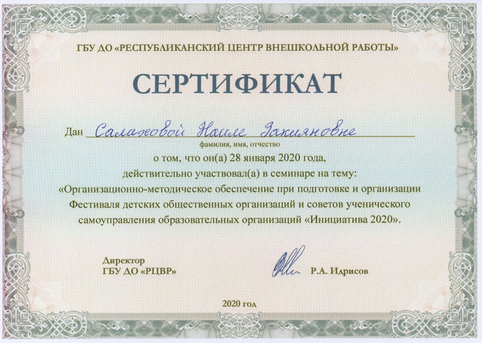 Сертификат об учатии на семинаре организаторов детского отдыха