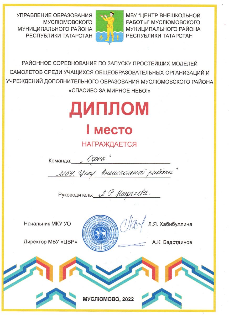Диплом "Спасибо за мирное небо" Команда "Офык"