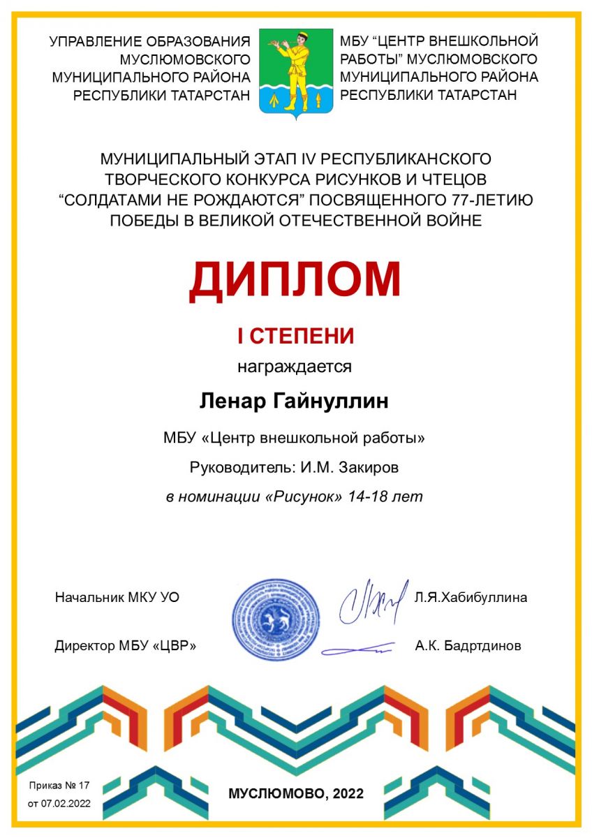 Диплом конкурса Солдатами не рождаются Гайнуллин И.