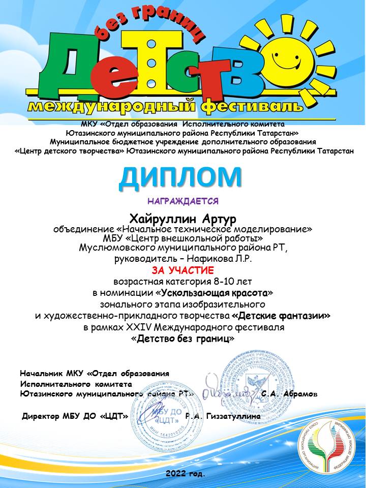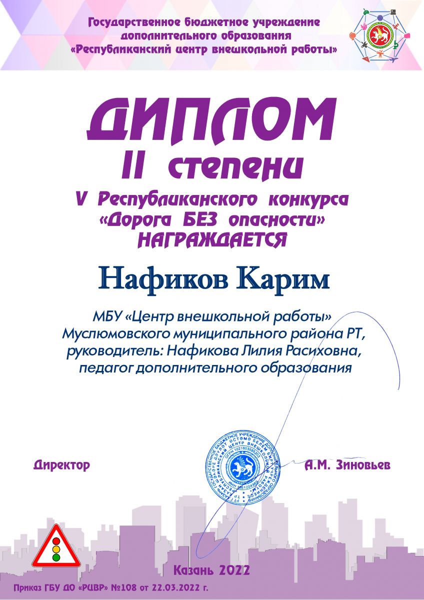 Диплом "Дорога БЕЗ опасности" Нафиков К.