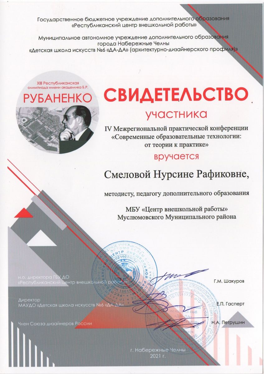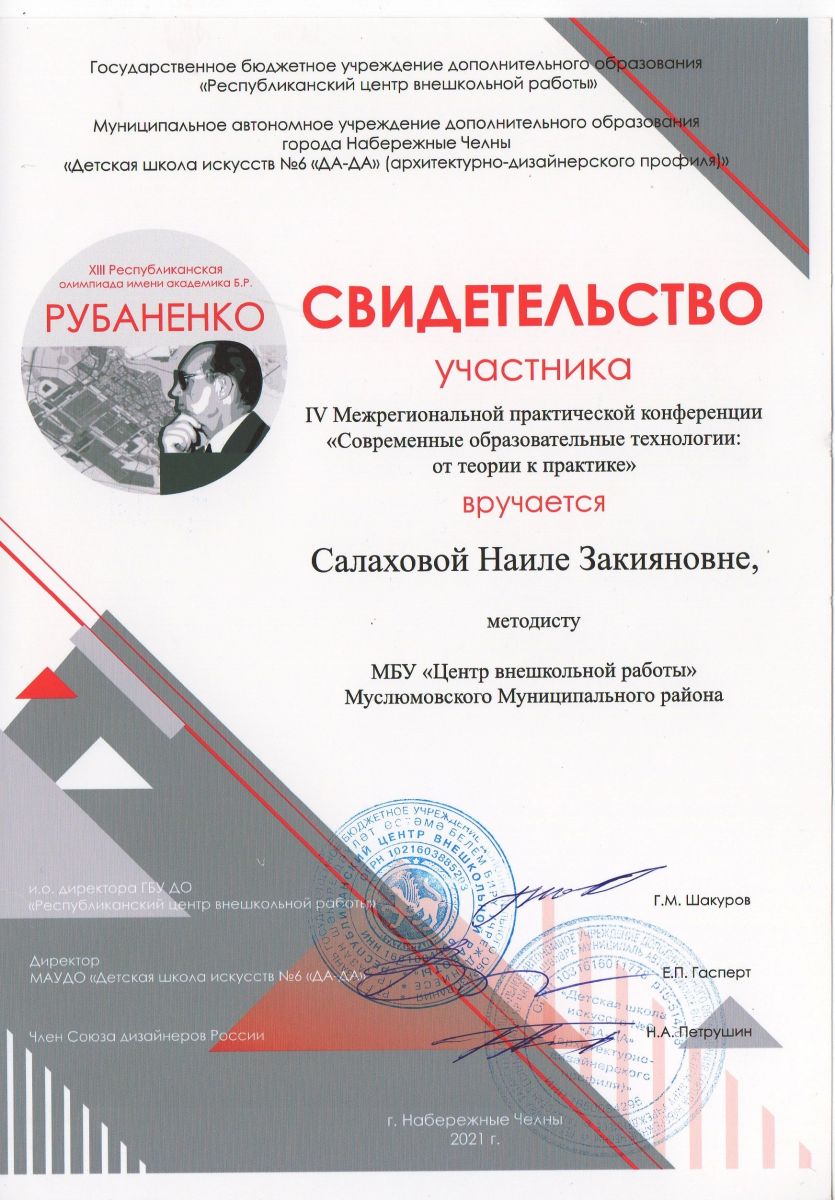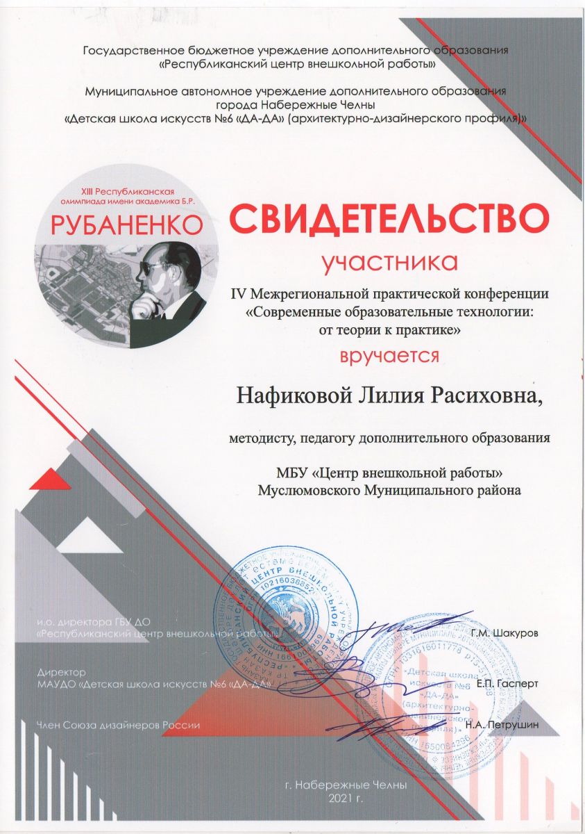 Свидетельство за участие в конференции Нафикова Л.Р.