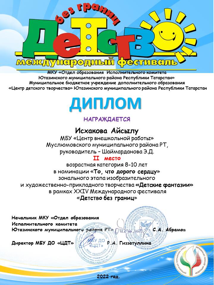 Грамота 2 место (ПДО) "Рабочей профессией славится мой Татарстан".