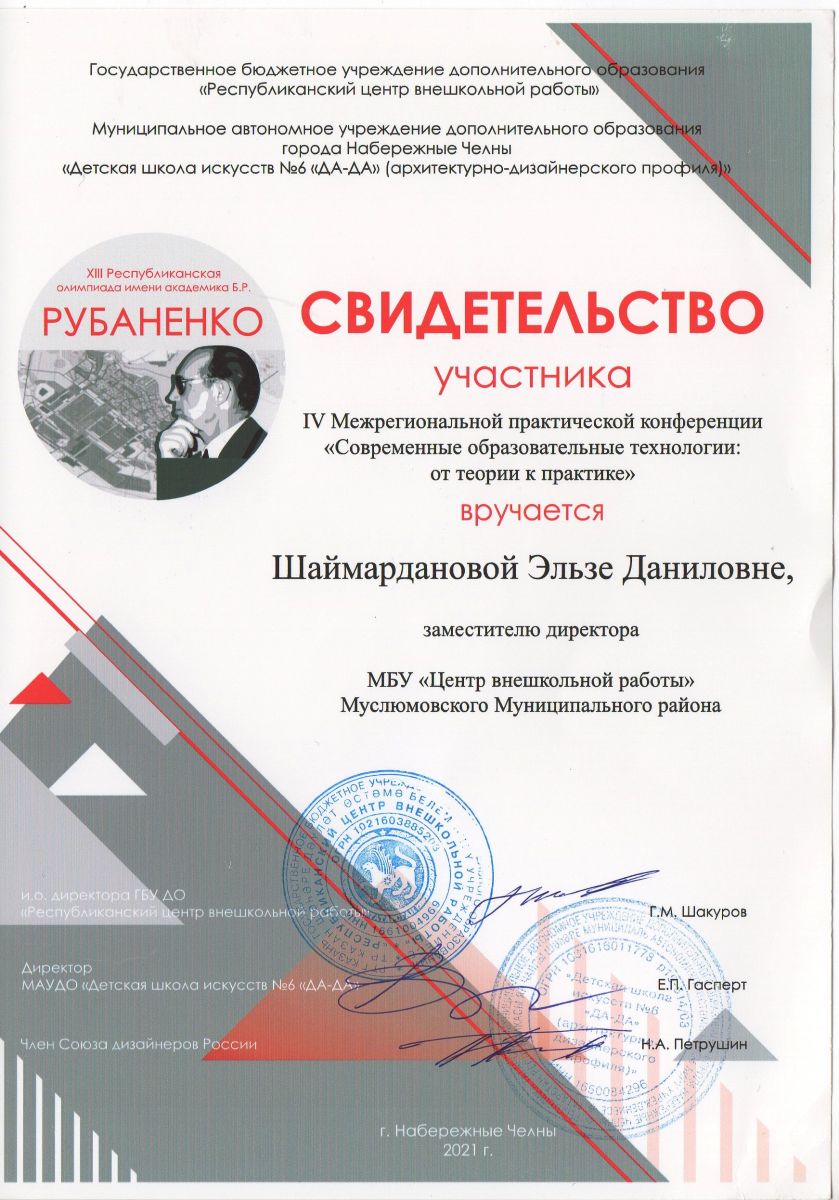 Свидетельство за участие в конференции Шаймарданова Э.Д.