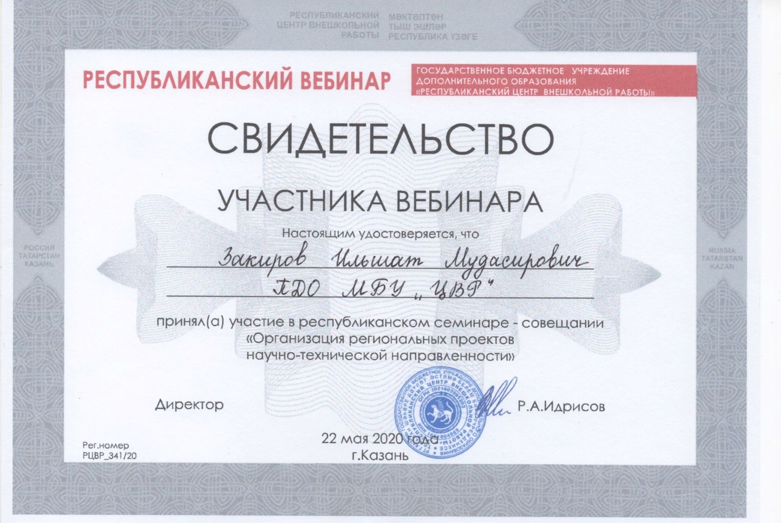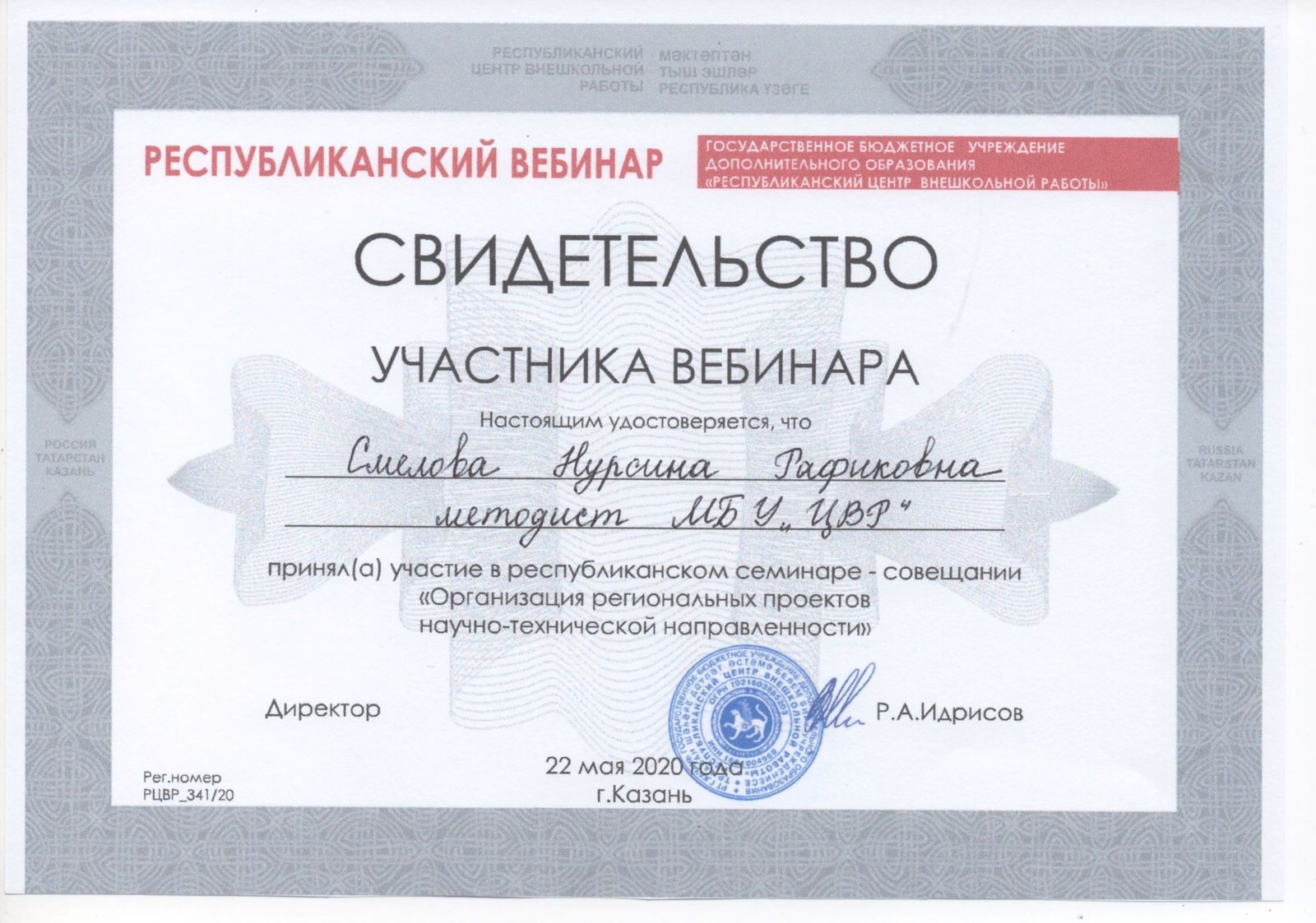 Свидетельство за участие в вебинаре Нафикова Л.Р.
