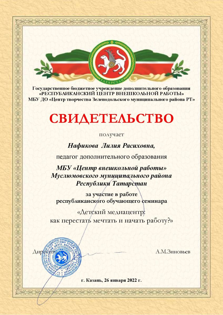 Участие в Республиканском семинаре Нафикова Л.Р.