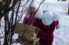 Мөслим "Карлыгач" балалар бакчасы. Уртанчылар төркеме балалары саф hавада кошлар ашаталар, замок төзиләр, хәрәкәтле уеннар уйнап чыныгалар.