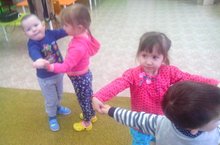 Муслюмовский детский сад "Карлыгач". Дети первой младшей группы повторяют движения танца "Кнопочка". Цель научить детей выполнять движения в паре.