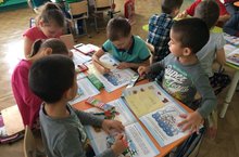 Мөслим авылы "Карлыгач" балалар бакчасы, мәктәпкә әзерлек төркемендә рус теле дәресе барышы. Эш дәфтәрләрендә мөстәкыйль эшләу.