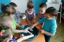 Мөслим авылы "Карлыгач" балалар бакчасы, икенче кечкенәләр төркеме. Су белән тәҗрибә үткәрү.