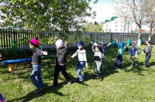 С потеплением температуры воздуха, воспитатели утреннюю гимнастику с детьми проводят на свежем воздухе.