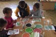 Дети подготовительной группы продолжают работу в рамках проекта. На этот раз дети познакомились со цветным песком, изучили его свойства, научились рисовать с помощью цветных песков.