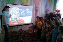 В день космонавтики в ДОУ было организовано мероприятие "Необъятный космос". Воспитатели подготовили материалы для детей по ознакомлению с космонавтикой, с первым космонавтом.
