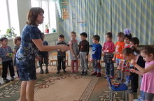 Музыка җитәкчесе Гөлнар Валериянт кызы, мәктәпкә хәзерлек төркеме балалары белән берлектә, "Яшь бөреләр" конкурсына әзерләнәләр.