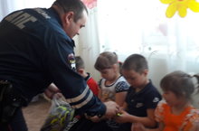В рамках недели безопасности дорожного движения, наш детский сад посетил инспектор ГИБДД Бикмурзин Р. Н. Он рассказал детям о правилах дорожного движения, выслушал их вопросы и подарил детям светоотражатели.