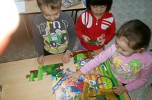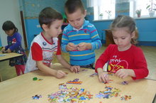 Ребята с большим интересом собирают пазлы, проявляя при этом терпение и усидчивость. С каждым днем малыши второй младшей группы все увереннее складывают интересные и яркие картинки. Во время игры с пазлами дети закрепляют свои знания об окружающем мире: о диких и домашних животных, о деревьях и цветах.