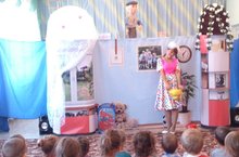 Буген безгә кунакка "Веселая компания" дип исемләнгән курчак театры килде. Балалар игътибарына,Бөек җиңүнең 70 еллыгына багышланган, "Дедушкина медаль" дип исемләнгән әкиятне сәхнәләштерде.
