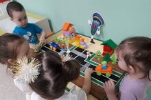 Дети первой младшей группы знакомятся с правилами дорожного движения по макету "Наша улица".