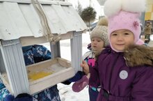 Дети подготовительной группы совместно с родителями участвовали в конкурсе "Кормушка, помоги птицам!".