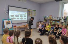 Туган телләр һәм халыклар бердәмлеге елы уңаеннан, мәктәпкә әзерлек төркемендә "Чал тарихлы Казаным" дигән темага әңгәмә узды. Балаларда тарихи үзаң, башкалабыз Казан турында күбрәк белергә теләк тәрбияләү. Татарстан Республикасының символикасында төшерелгән рәсемнәрнең, төсләрнең мәгънәсен аңлату.
