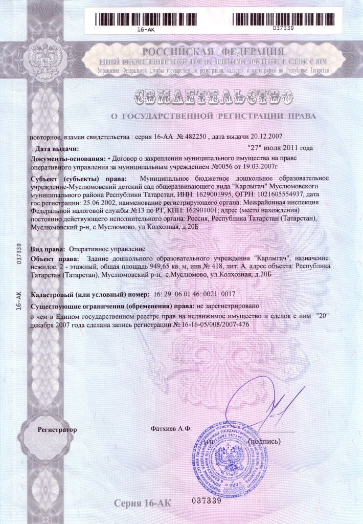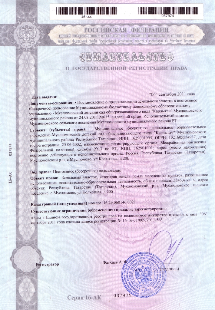 | Адрес: | 423970, Республика Татарстан, Муслюмовский район, с. Муслюмово ул.Колхозная д. 20 б |
