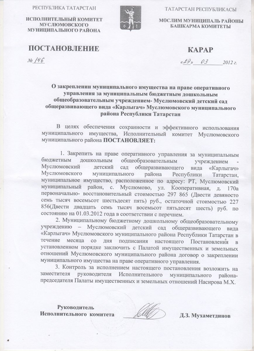 МБДОУ - Муслюмовский детский сад общеразвивающего вида «Карлыгач» Муслюмовского муниципального района РТ