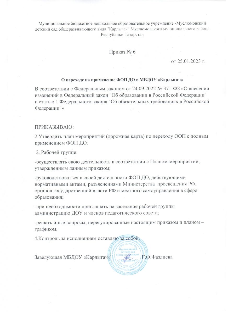 Приказ о переходе на применение ФОП ДО в МБДОУ Карлыгач.jpeg