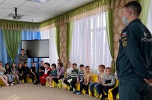 Бүген бакчабызның мәктәпкә әзерлек һәм зурлар төркеме балалары МЧС инспекторы Тайбактин Вильям Сергеевич белән очраштылар. Очрашу барышында инспектор балалар белән бик файдалы, мәгънәле әңгәмә үткәрде. Пожар булган очракта нәрсәләр эшләргә икәнлеген аңлатты, төрле очракларда үзеңне ничек тотарга икәнлеген сөйләде. Тормышта булган хәлләр белән таныштырды. Әңгәмә ахырында әти-әниләр танышсын өчен махсус брошюралар таратты.
