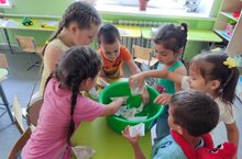 Уртанчылар төркемендә ком белән тәҗрибәләр үткәрдек.Тәҗрибәләр үткәрү балаларның мөстәкыйль фикер йөртә белү, уйлау, хәтердә калдыру сәләтен, игьтибарын, тирә-юньне кузаллауларын киңәйтүгә, ярдәмчеллек, бер-берсенә карата уңай мөнәсәбәтләр тәрбияләүгә ярдәм итә.