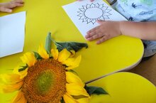Икенче кечкенәләр төркемендә көнбагыш чәчәге турында әңгәмә үткәрдек, аның турында шигырь ятладык һәм дөрес итеп буярга өйрәндек.