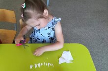 Икенче кечкенәләр төркемендә төрле форма һәм үлчәмдәге кәгазь детальләрдән кечкенә фигуралар ясау күнекмәсен формалаштыру, кайчы ярдәмендә турыга кисү техникасын үзләштерүне дәвам итү. Кләй һәм кайчы белән эшләү күнекмәләрен ныгыту. Балаларның иҗади фикерләүләрен, иҗади сәләтләрен үстерү.