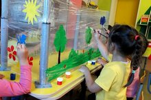 Азык-төлек пленкасында рәсем ясау бик мавыктыргыч техника. Балаларның фикерләү сәләтен, эстетик зәвыгын үстерергә, төрле төсләрне кушарга өйрәтүдә ярдәм итә. Бу рәсем техникасын җәй көне саф һавада урамда кулланырга мөмкин, балалар өчен әлеге ысул тагын да кызыклырак була, үз-үзеңне күрсәтү өчен тулы ирек бирә.