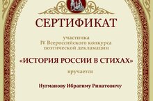 Мәктәпкә әзерлек төркеме балалары Бөтенроссия шигырь конкурсында катнашып сертификатка ия булдылар. Ногманов Ибраһимны, Кадирова Әлфияне, Бухарин Рамазанны котлыйбыз!