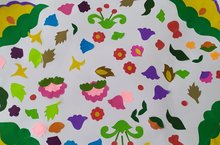 Икенче кечкенәләр төркемендә кисеп-ябыштыру шөгылендә күмәк эш башкарылды. Татар халык милли орнаментлары белән танышып, балалар "Әниләргә бүләккә ашьяулык" исемле аппликаөия ясадылар.
